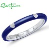 SANTUZZA 925 Sterling Silver White Cubic Zirconia Stackable Ring Jewelry Dark Blue Enamel