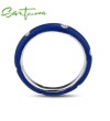 SANTUZZA 925 Sterling Silver White Cubic Zirconia Stackable Ring Jewelry Dark Blue Enamel