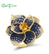 SANTUZZA 925 Sterling Silver Ring Blue Spinel Yellow Crystal Blooming Flower Fine Jewelry