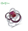 SANTUZZA 925 Sterling Silver Ring White CZ Created Red Ruby Flora Fine Jewelry