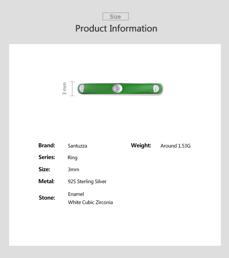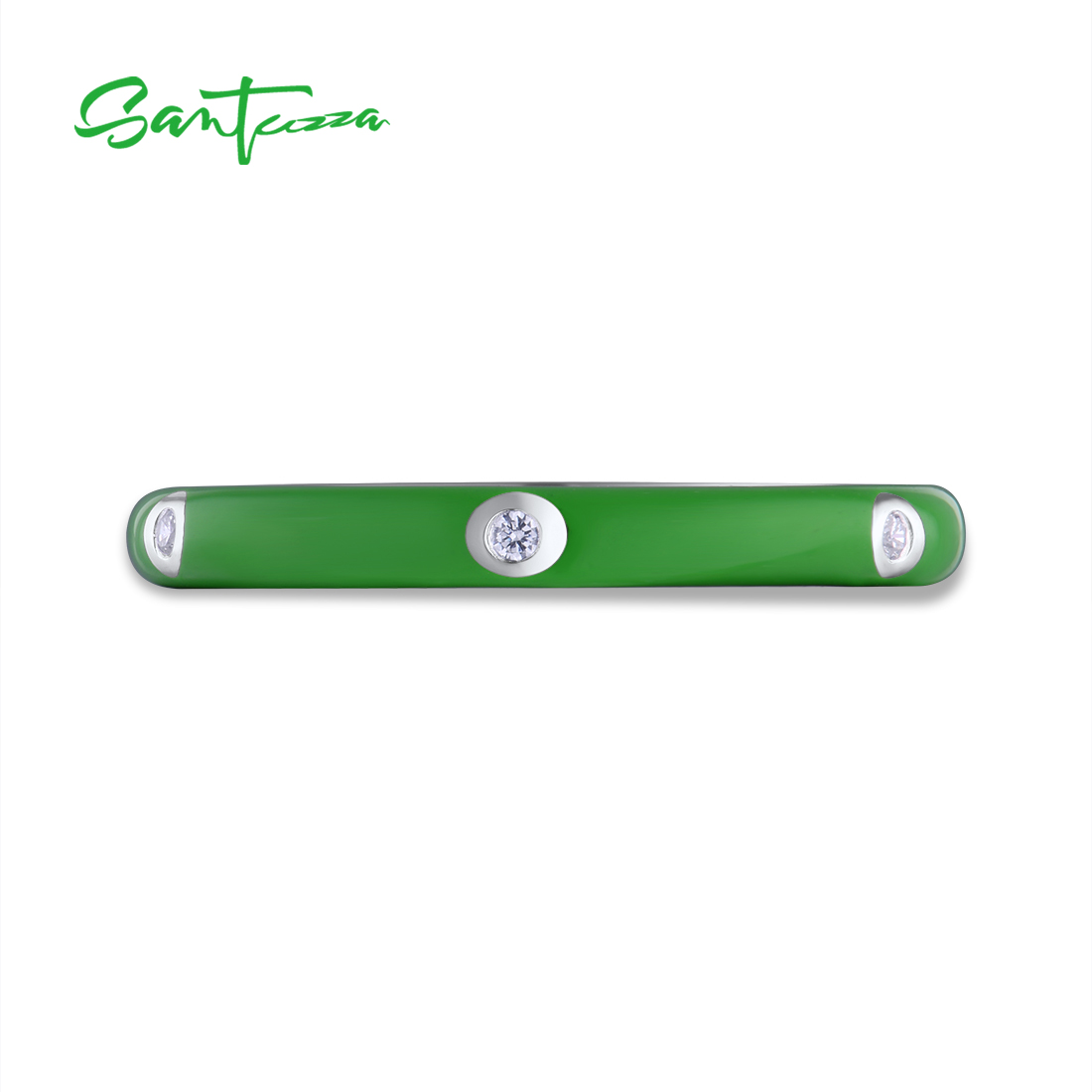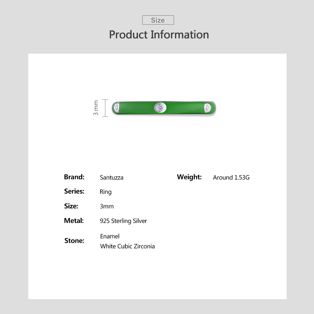 SANTUZZA 925 Sterling Silver White Cubic Zirconia Stackable Ring Jewelry Green Enamel