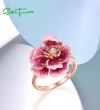 SANTUZZA 925 Sterling Silver Rings White CZ Enamel Pink Sweet Flower Fine Jewelry