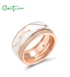 SANTUZZA 925 Sterling Silver Band Rings White CZ Handmade Enamel Fine Jewelry