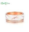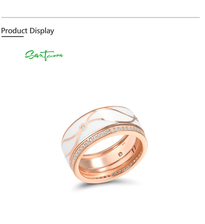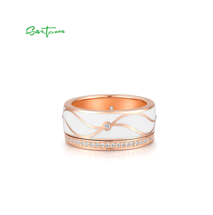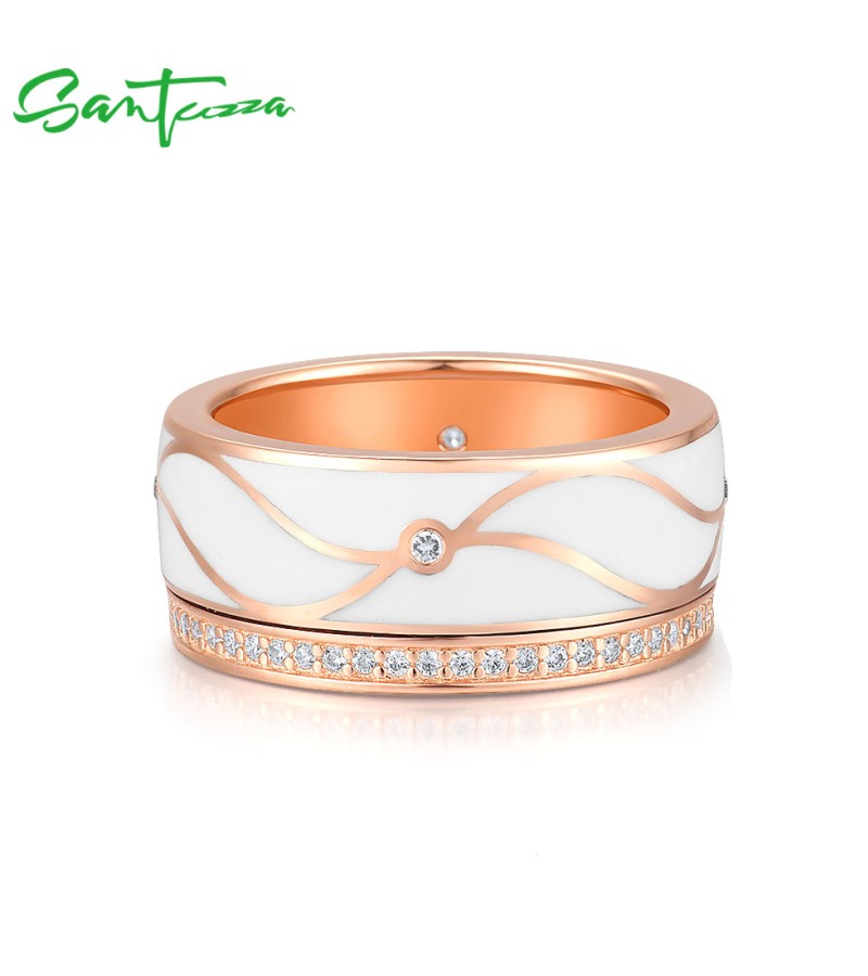 SANTUZZA 925 Sterling Silver Band Rings White CZ Handmade Enamel Fine Jewelry