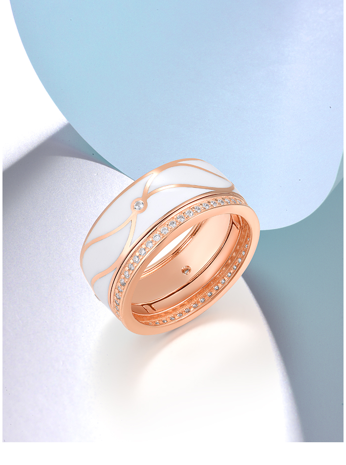 SANTUZZA 925 Sterling Silver Band Rings White CZ Handmade Enamel Fine Jewelry - US 6
