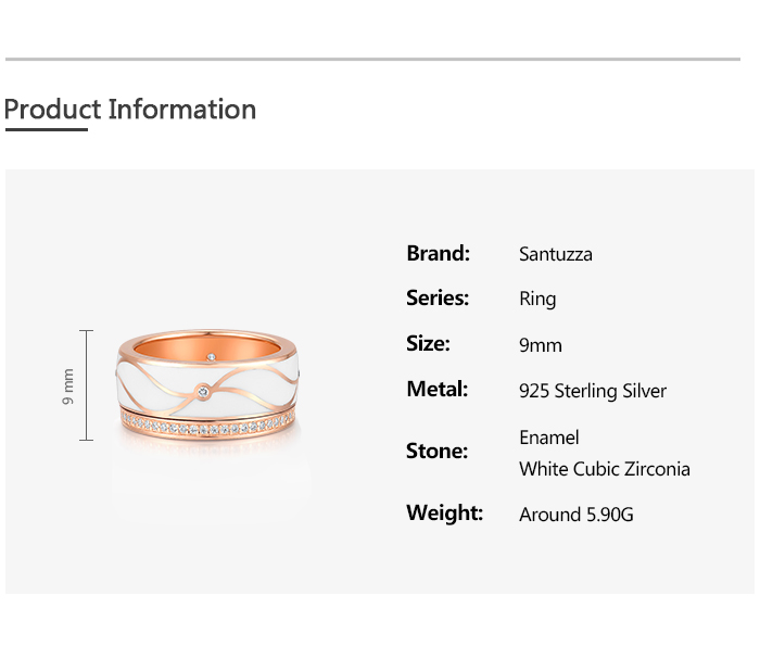 SANTUZZA 925 Sterling Silver Band Rings White CZ Handmade Enamel Fine Jewelry - US 9