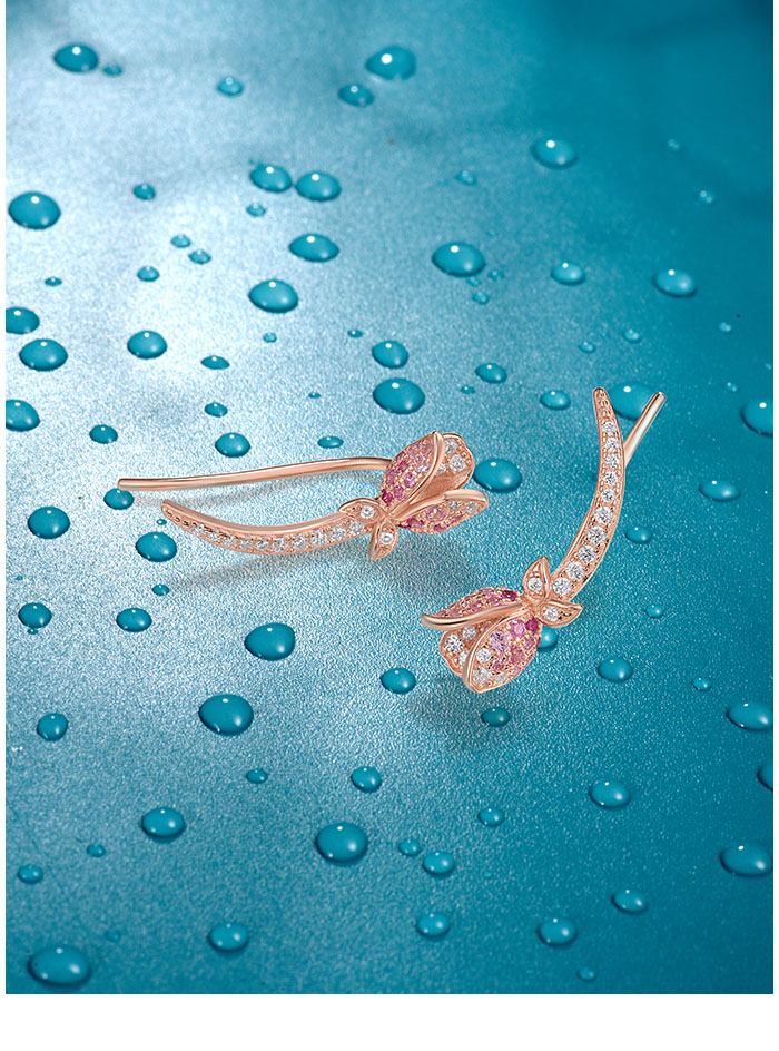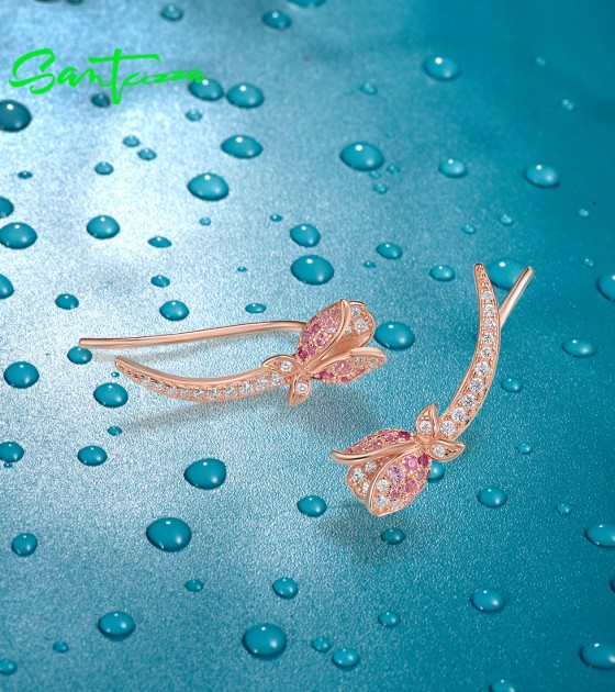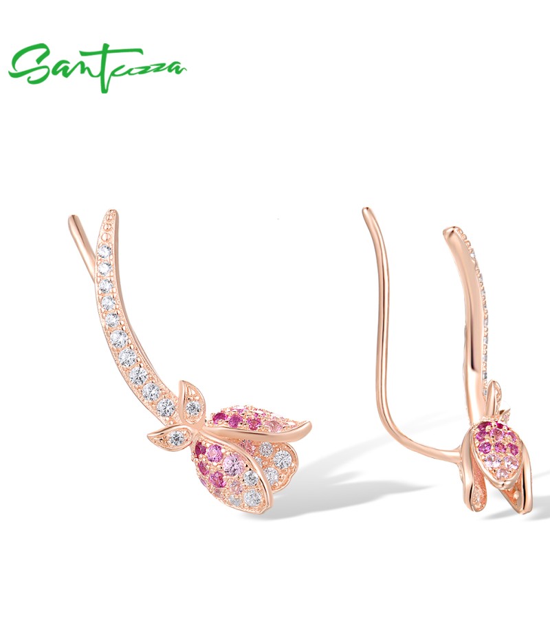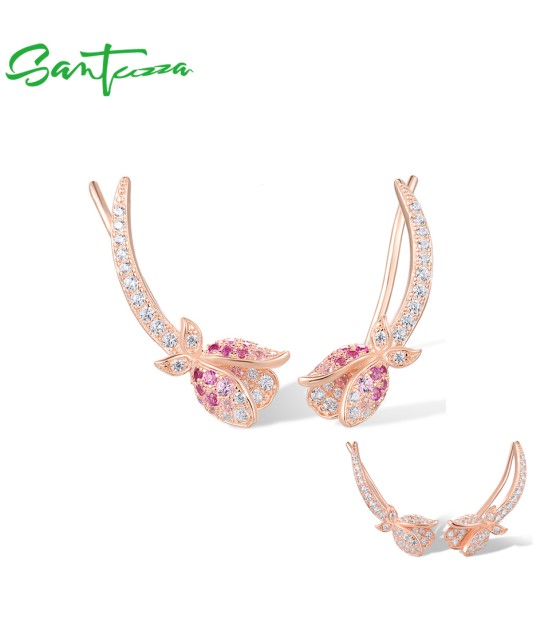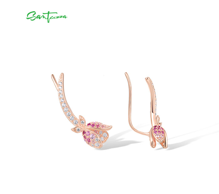 SANTUZZA 925 Sterling Silver Earrings Climber Created Ruby Sapphire White CZ Flower Cuff Pierce Jewelry - Pink and Red Stones