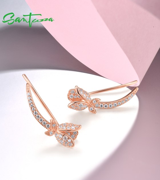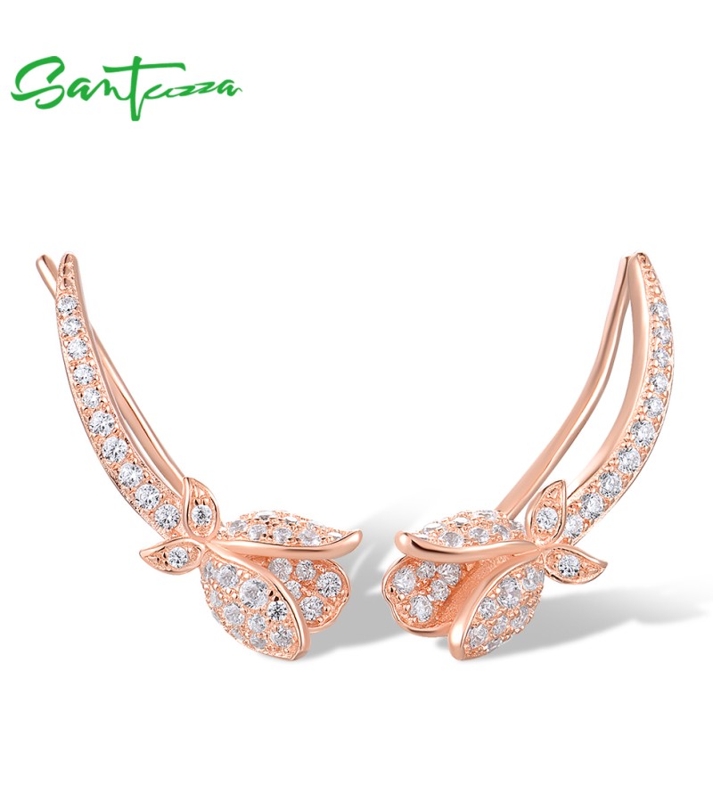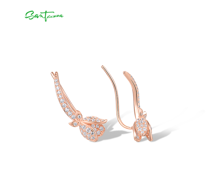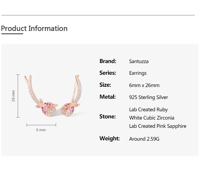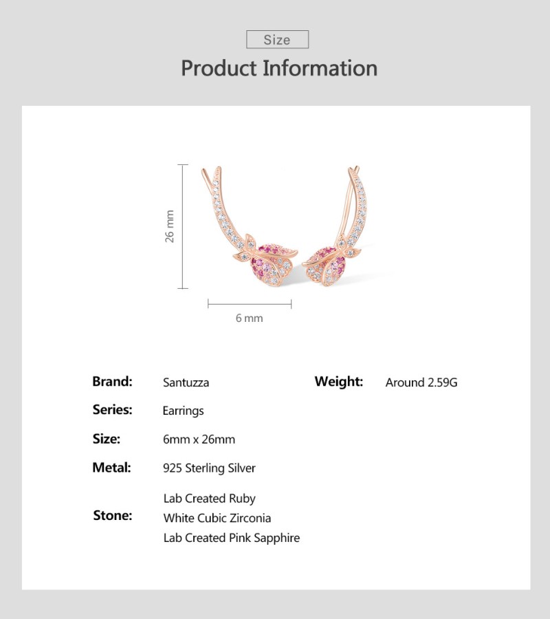 SANTUZZA 925 Sterling Silver Earrings Climber Created Ruby Sapphire White CZ Flower Cuff Pierce Jewelry