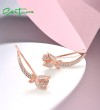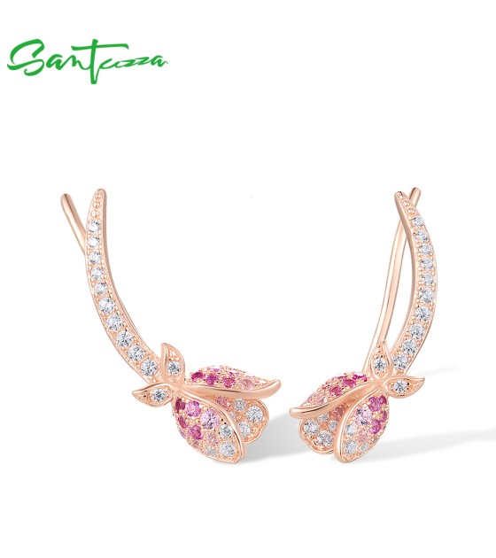 SANTUZZA 925 Sterling Silver Earrings Climber Created Ruby Sapphire White CZ Flower Cuff Pierce Jewelry