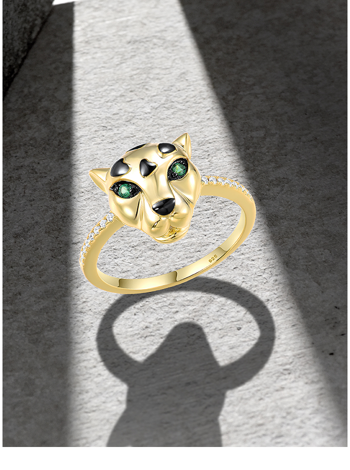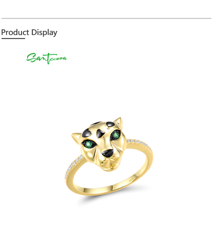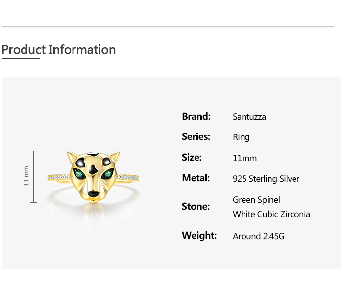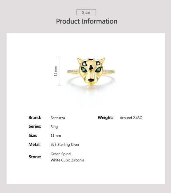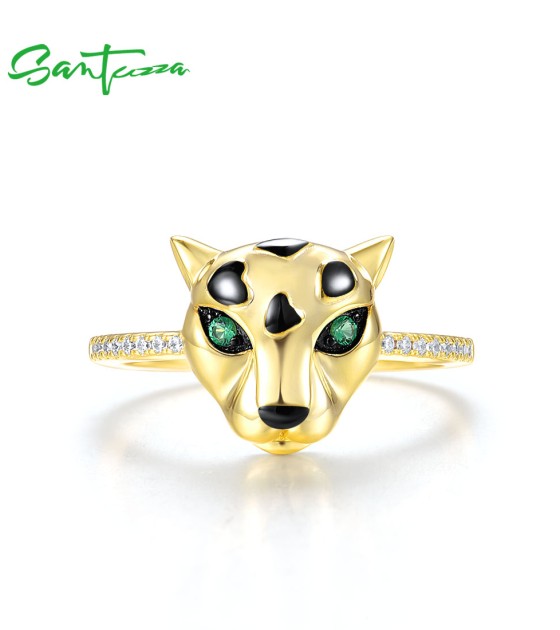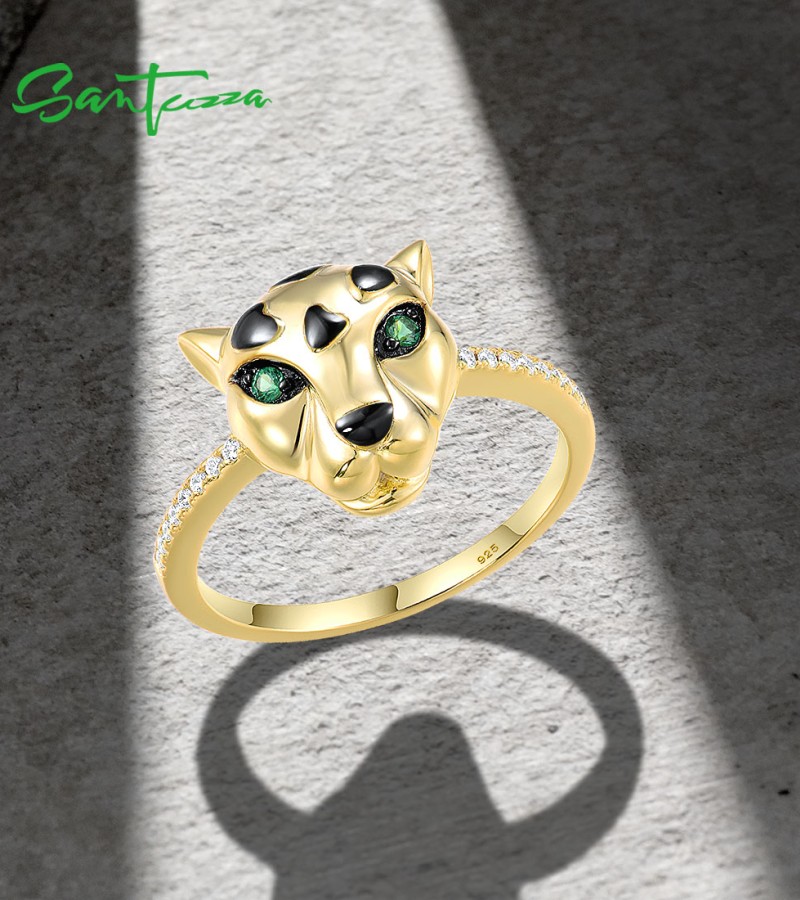 SANTUZZA 925 Sterling Silver Ring Green Spinel White CZ Gold Plated Leopard Fine Jewelry