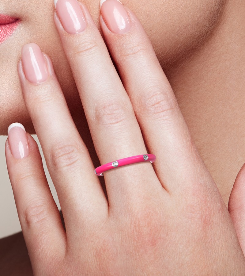 SANTUZZA 925 Sterling Silver White Cubic Zirconia Stackable Ring Jewelry Light Rose Enamel - US 8