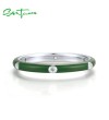 SANTUZZA 925 Sterling Silver White Cubic Zirconia Stackable Ring Jewelry Dark Green Enamel