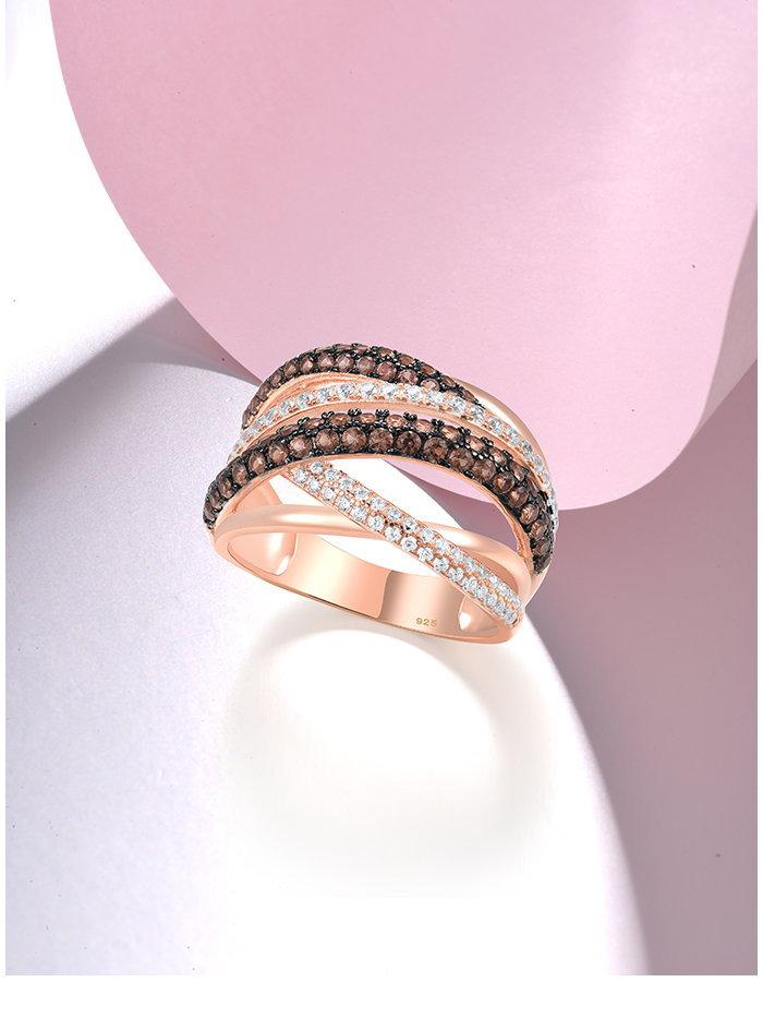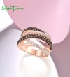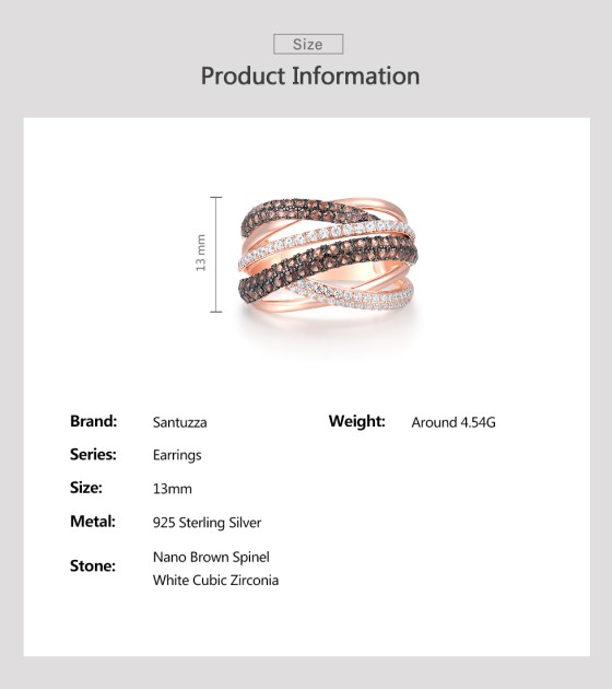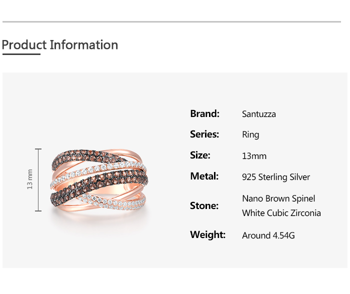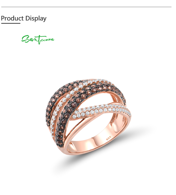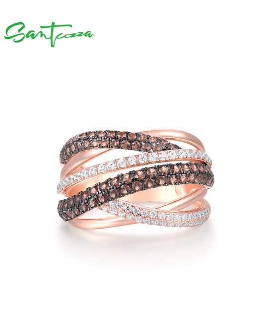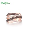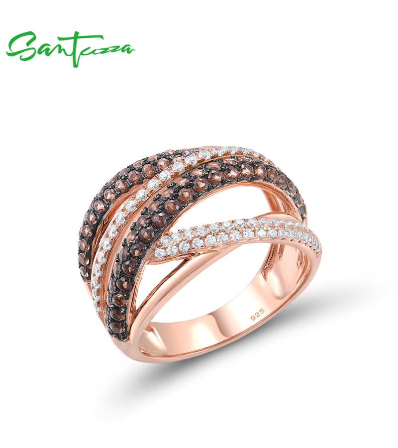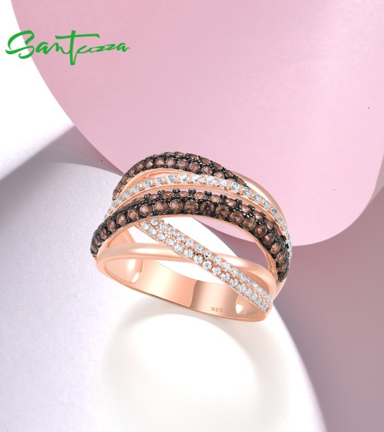 SANTUZZA 925 Silver Rings Nano Brown Spinel White CZ Ring Fine Jewelry