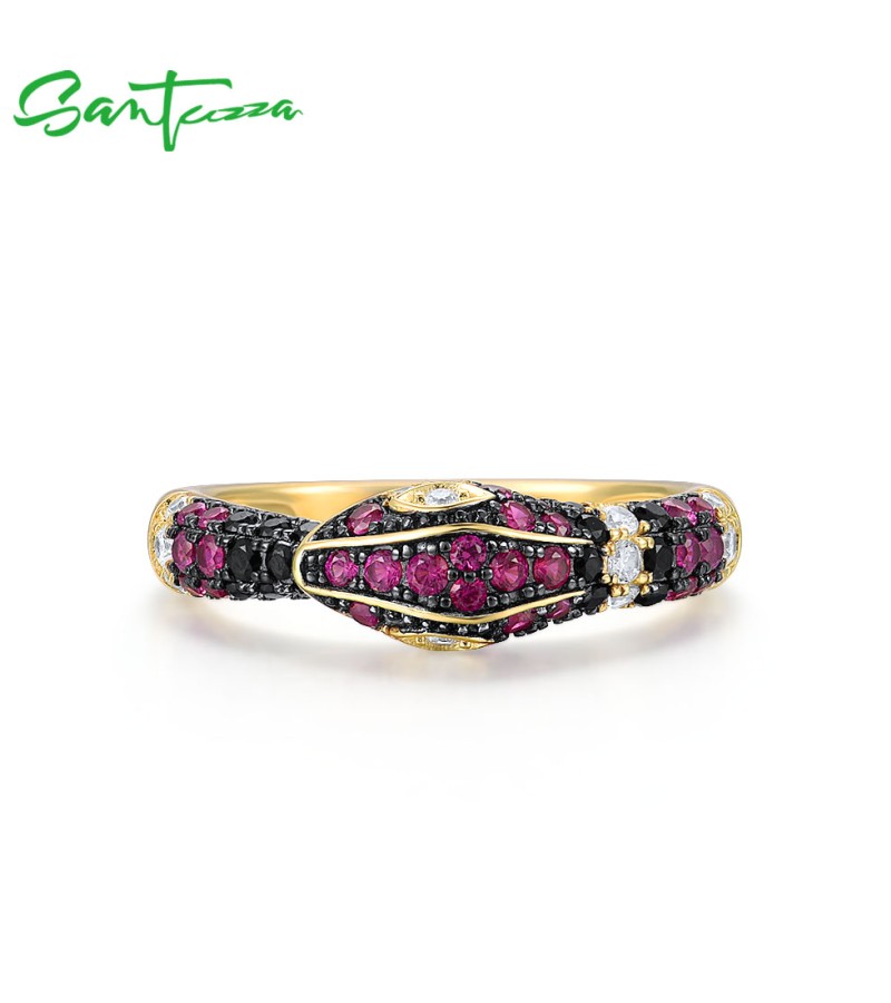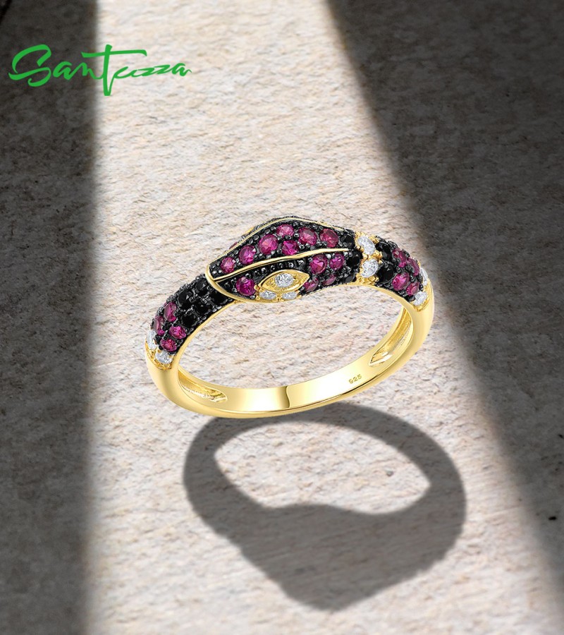 SANTUZZA 925 Sterling Silver Rings Black Red White CZ Snake Animal Fine Jewelry
