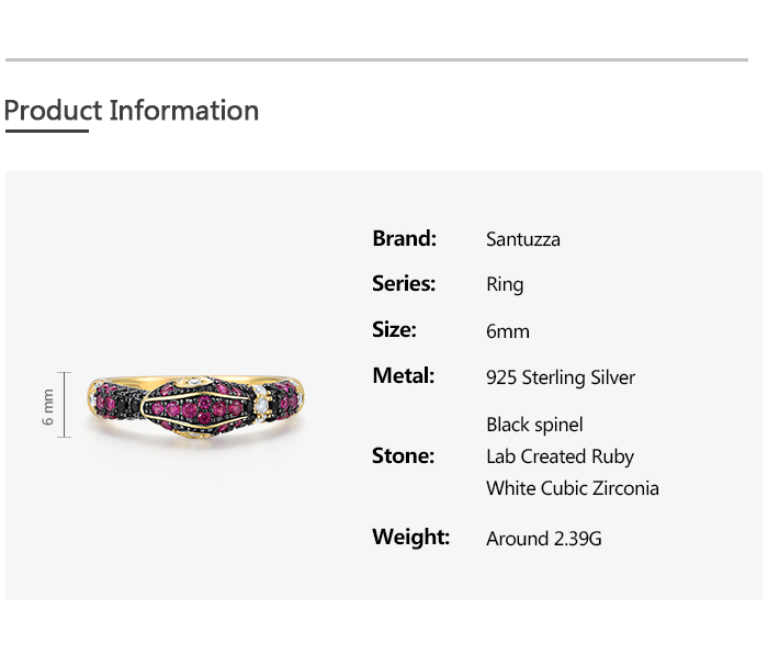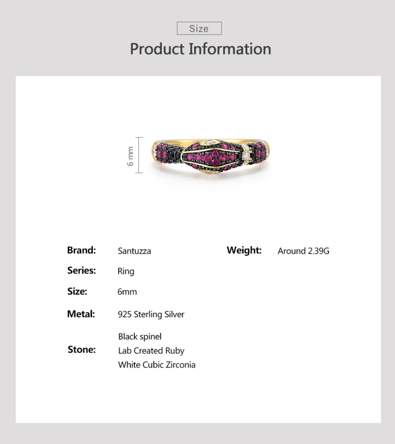 SANTUZZA 925 Sterling Silver Rings Black Red White CZ Snake Animal Fine Jewelry - US 6