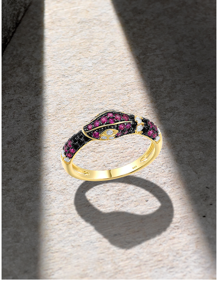 SANTUZZA 925 Sterling Silver Rings Black Red White CZ Snake Animal Fine Jewelry - US 7