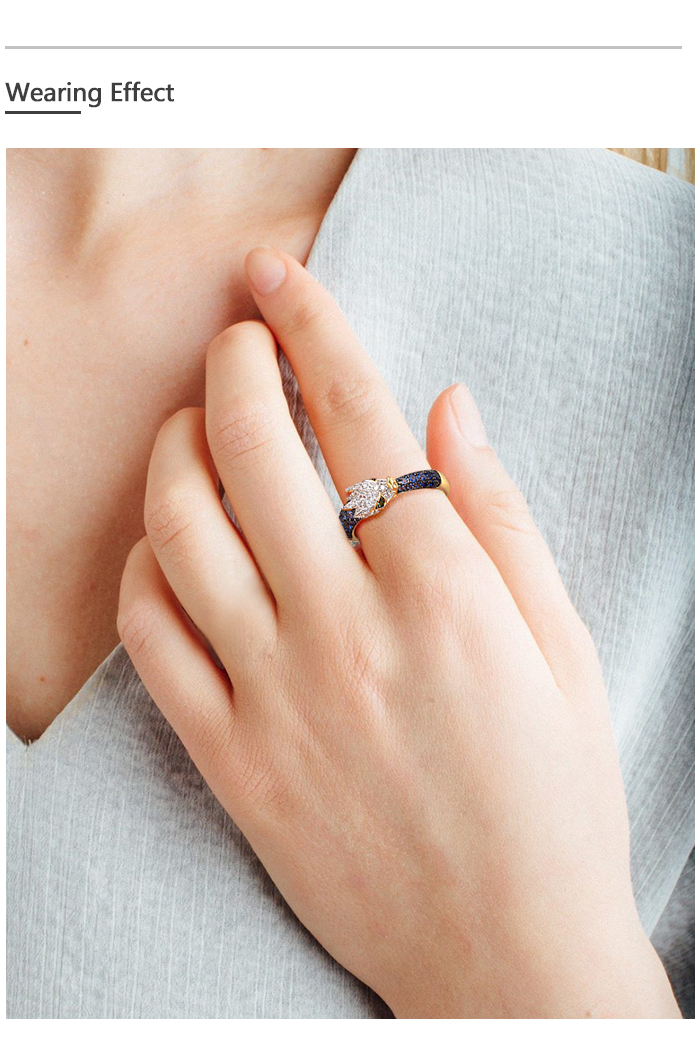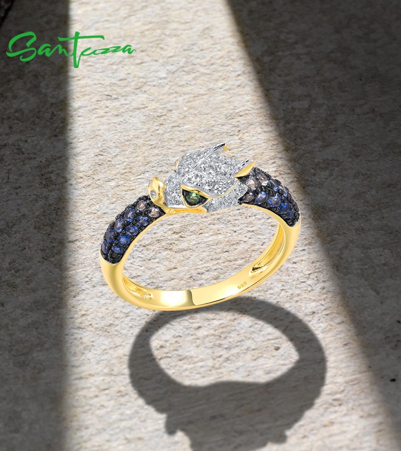 SANTUZZA 925 Sterling Silver Rings Sparkling Blue Green White CZ Dragon Animal Jewelry