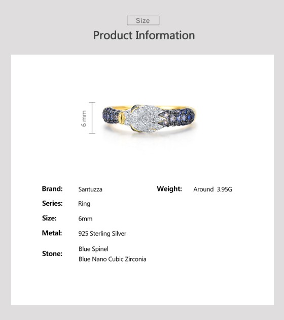 SANTUZZA 925 Sterling Silver Rings Sparkling Blue Green White CZ Dragon Animal Jewelry - US 9