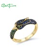 SANTUZZA 925 Sterling Silver Rings Sparkling Blue Green Phoenix Ring Animal Fine Jewelry