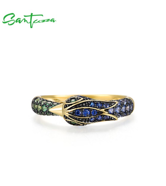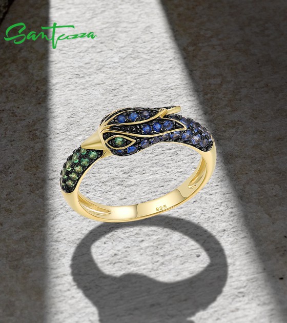 SANTUZZA 925 Sterling Silver Rings Sparkling Blue Green Phoenix Ring Animal Fine Jewelry