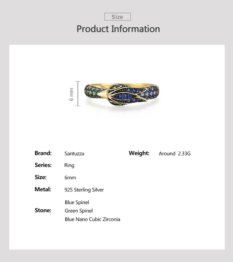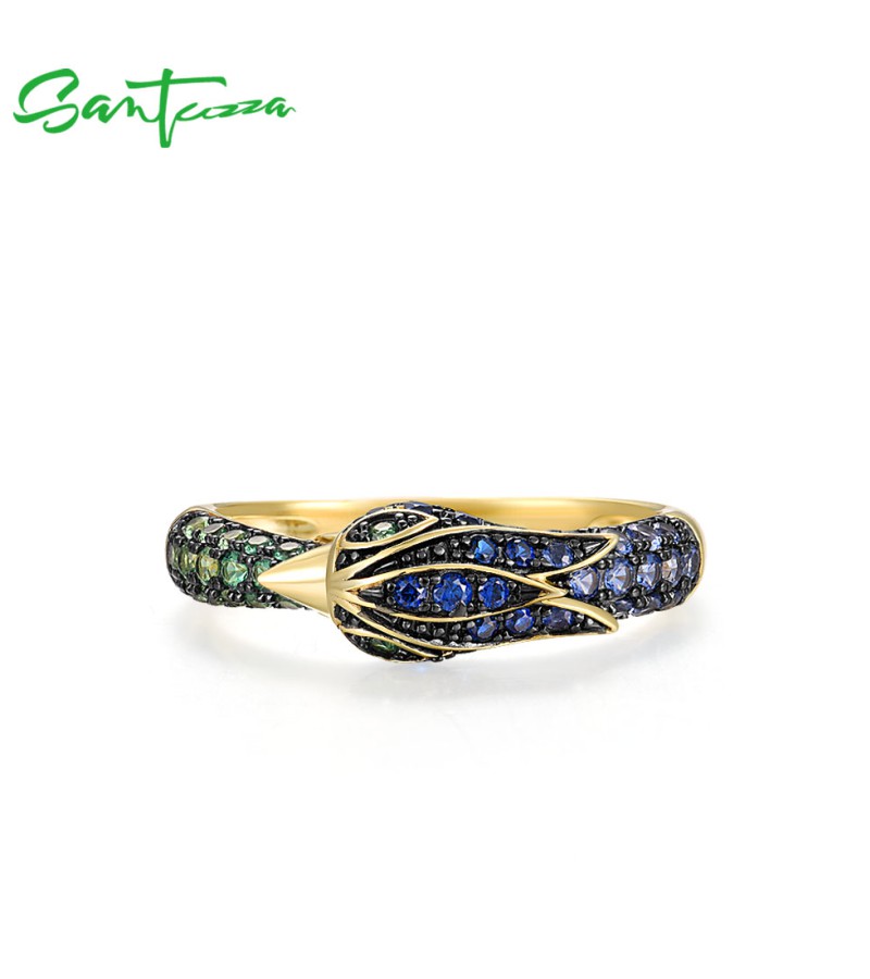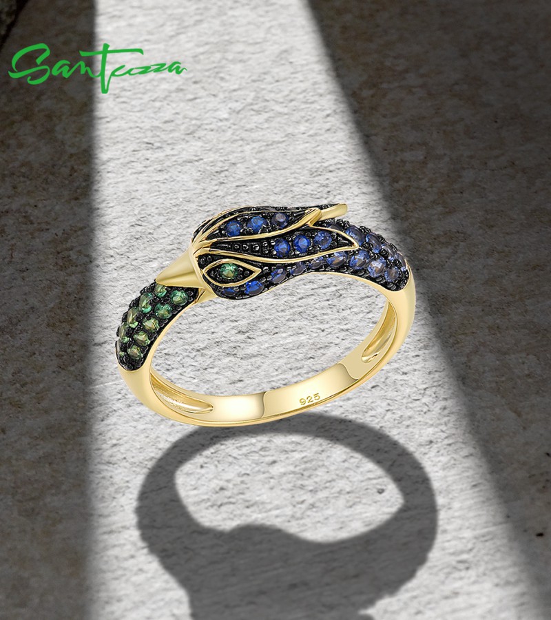 SANTUZZA 925 Sterling Silver Rings Sparkling Blue Green Phoenix Ring Animal Fine Jewelry-10