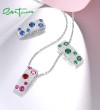 SANTUZZA 925 Sterling Silver Pendant Rectangle Blue CZ Green Spinel Ruby Fine Jewelry