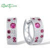 SANTUZZA 925 Sterling Silver Earrings Green Spinel Created Ruby Blue CZ Fine Jewelry - Pink and Red Stones