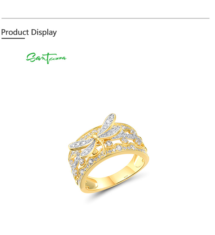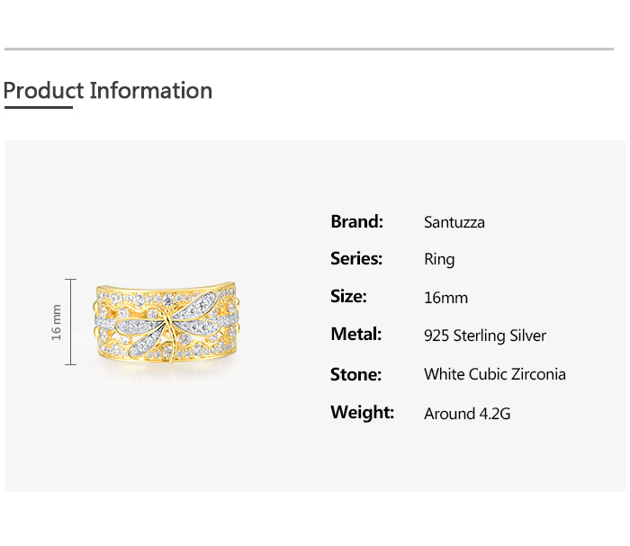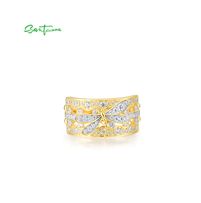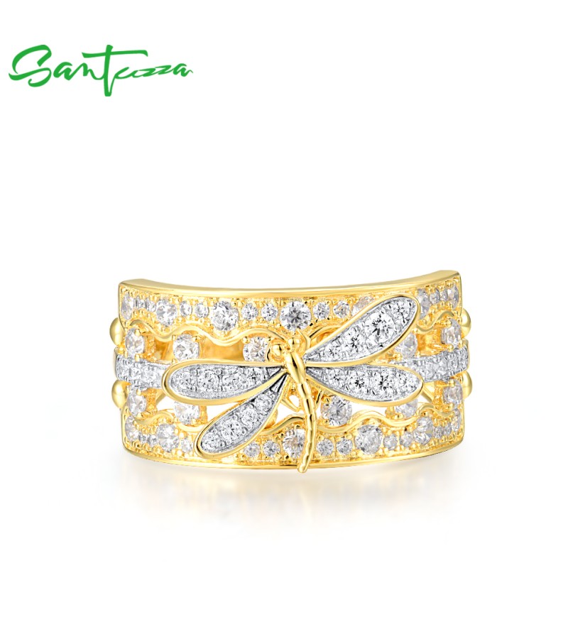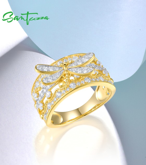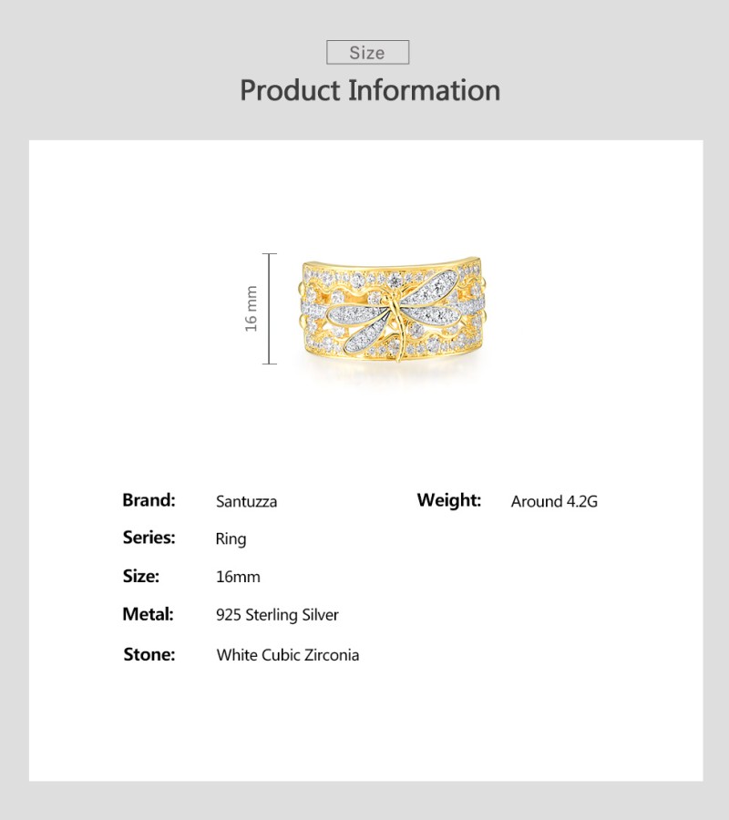 SANTUZZA 925 Sterling Silver Rings White Cubic Zircon Dragonfly Fine Jewelry