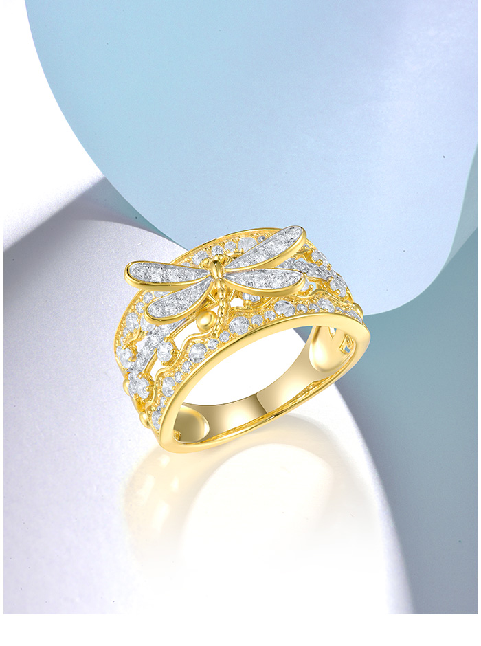 SANTUZZA 925 Sterling Silver Rings White Cubic Zircon Dragonfly Fine Jewelry - US 7