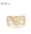 SANTUZZA 925 Sterling Silver Ring White Cubic Zircon Butterfly Fine Jewelry