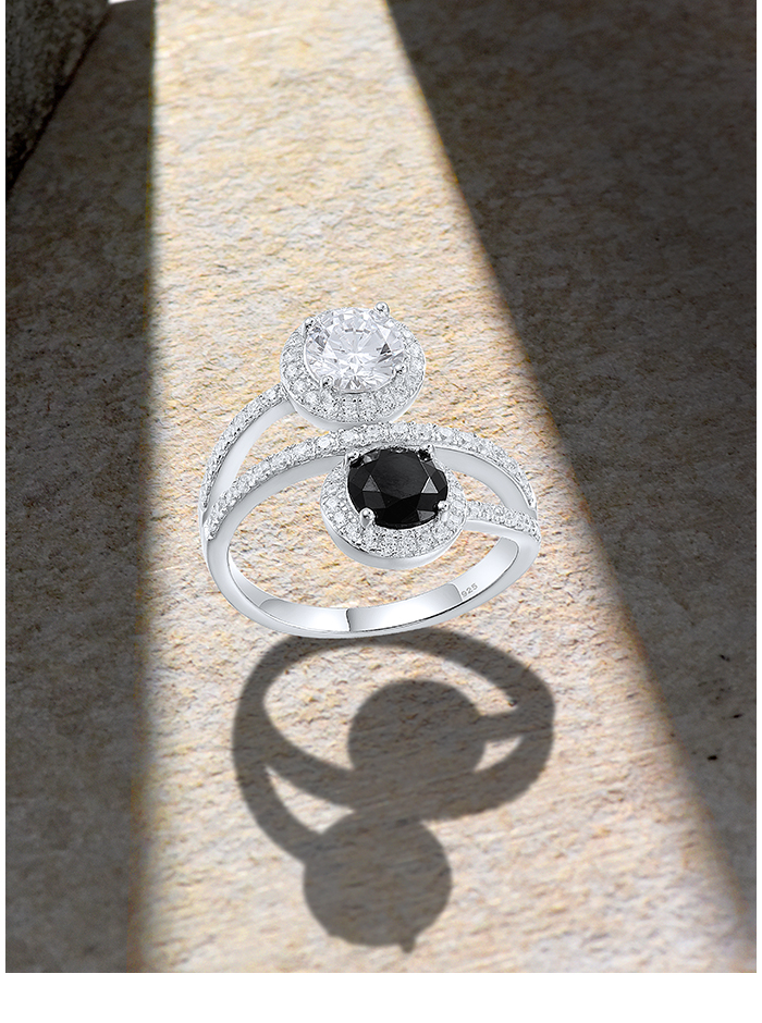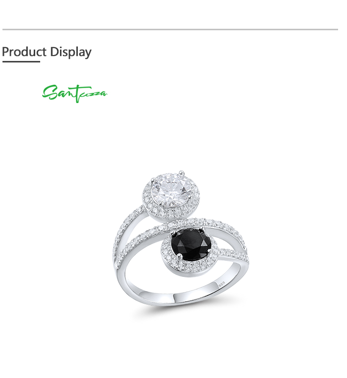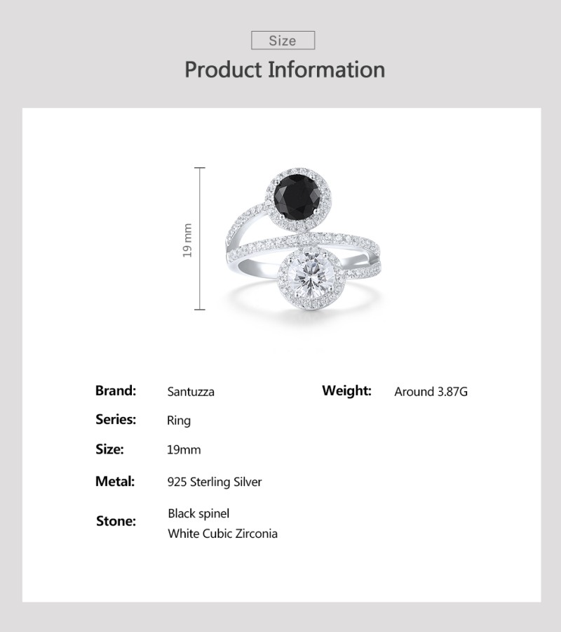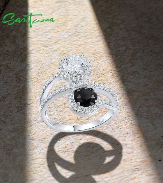 SANTUZZA 925 Sterling Silver Rings Black Spinel White CZ Fine Jewelry