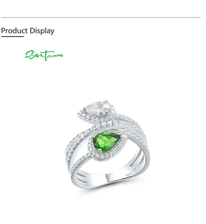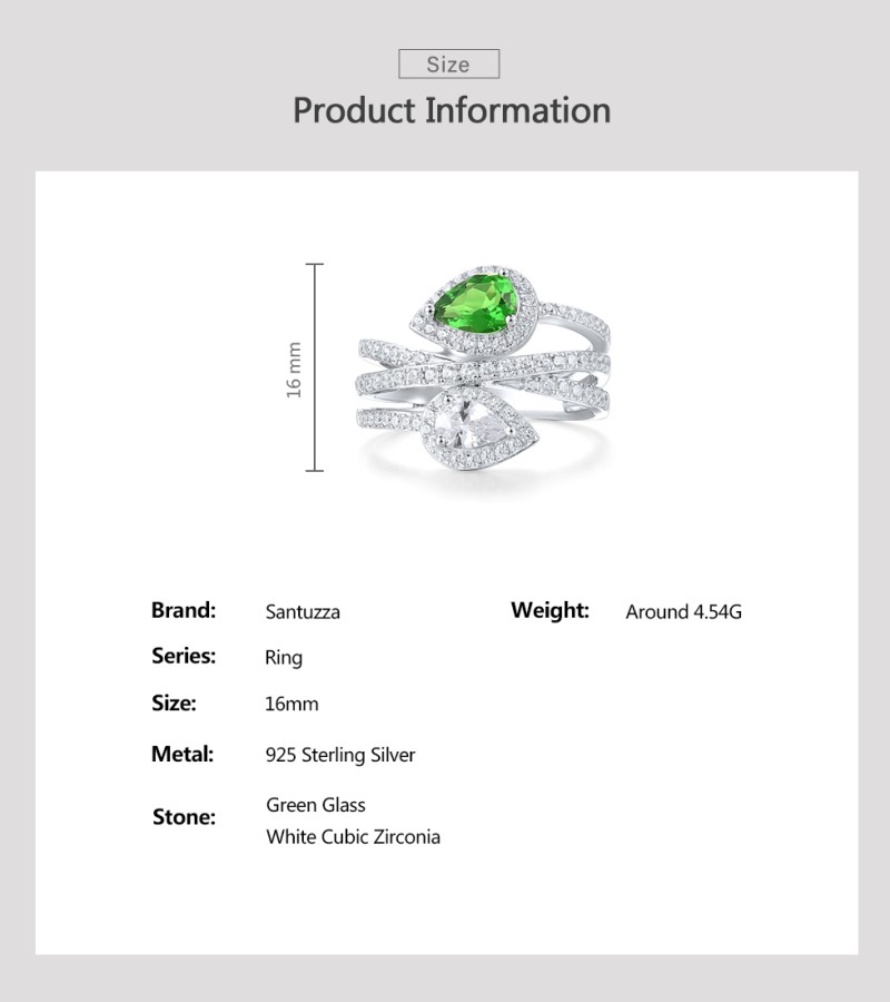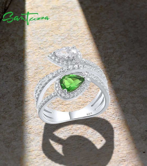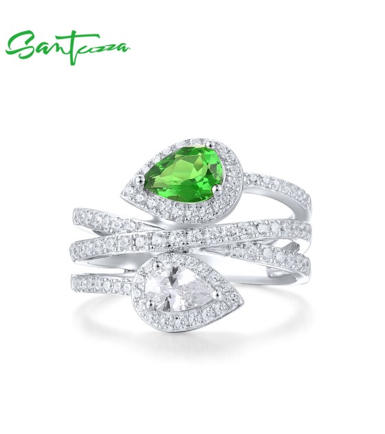 SANTUZZA 925 Sterling Silver Rings Green White CZ Fine Jewelry