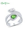 SANTUZZA 925 Sterling Silver Rings Green White CZ Fine Jewelry