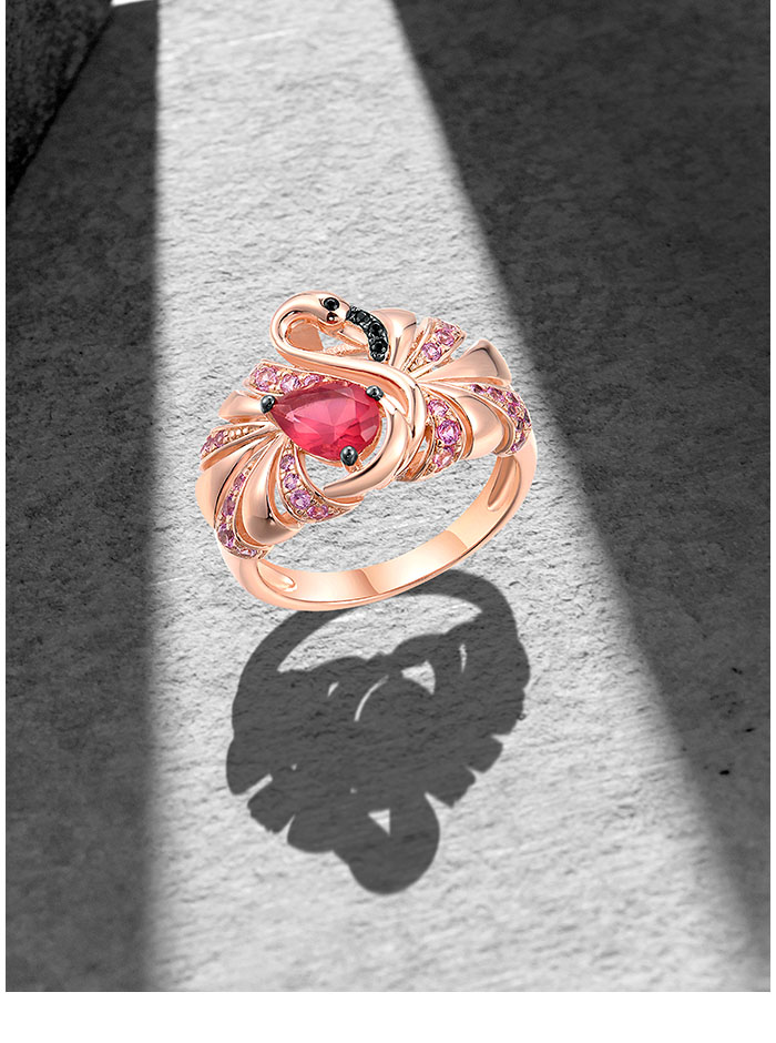 SANTUZZA 925 Sterling Silver Rings Red Stones Black Spinel Flamingo Rose Gold Color Jewelry - US 8