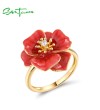 SANTUZZA 925 Sterling Silver Rings White CZ Enamel Red Flower Delicated Fine Jewelry