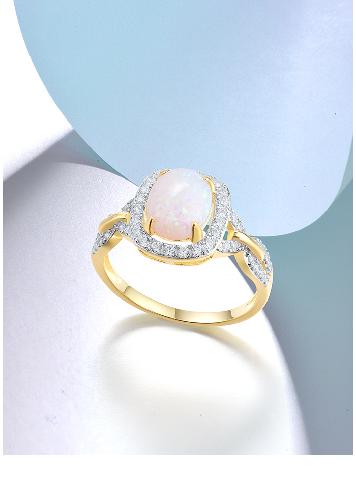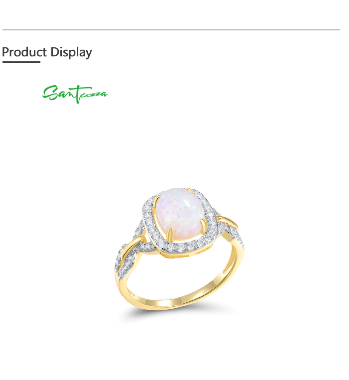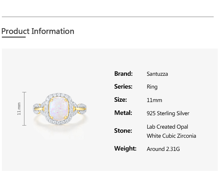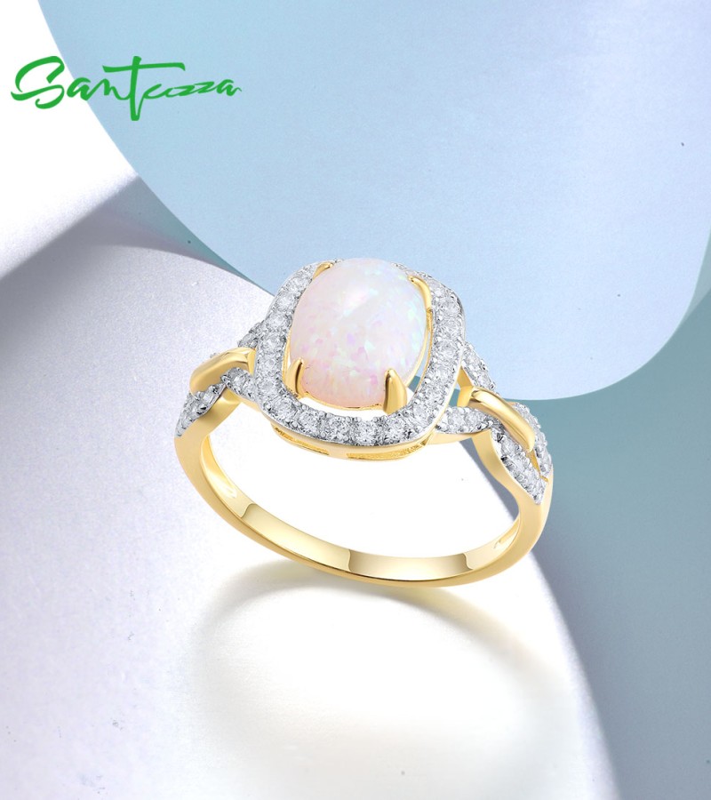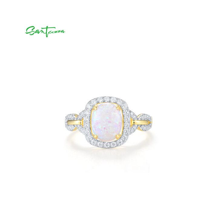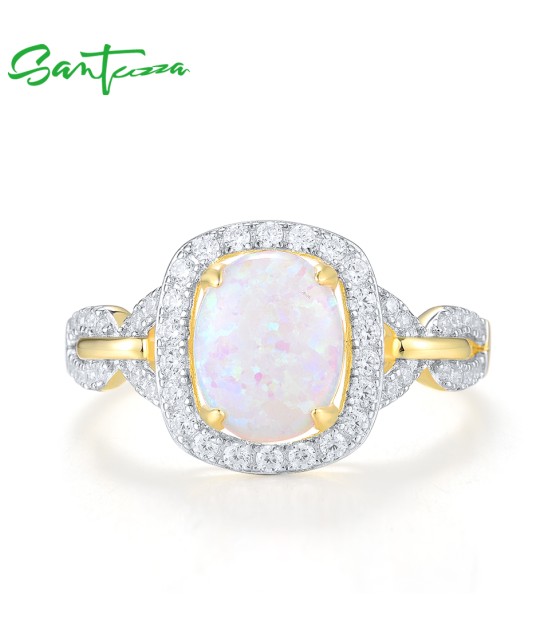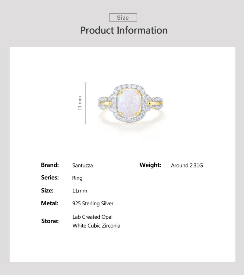 SANTUZZA 925 Sterling Silver Rings White CZ Created Opal Solitaire Fine Jewelry
