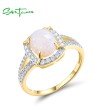SANTUZZA 925 Sterling Silver Rings White CZ Created Opal Solitaire Fine Jewelry