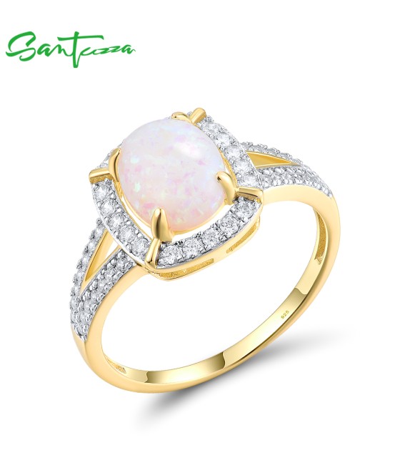 SANTUZZA 925 Sterling Silver Rings White CZ Created Opal Solitaire Fine Jewelry