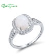 SANTUZZA 925 Sterling Silver Rings White CZ Created Opal Solitaire Fine Jewelry