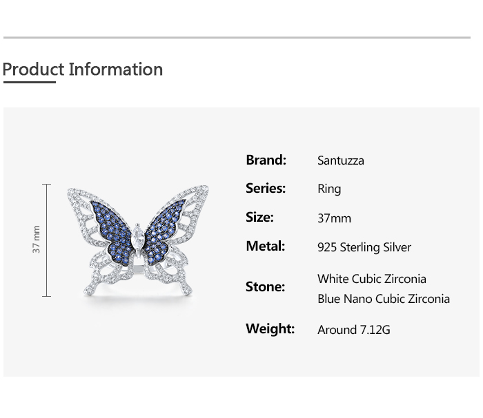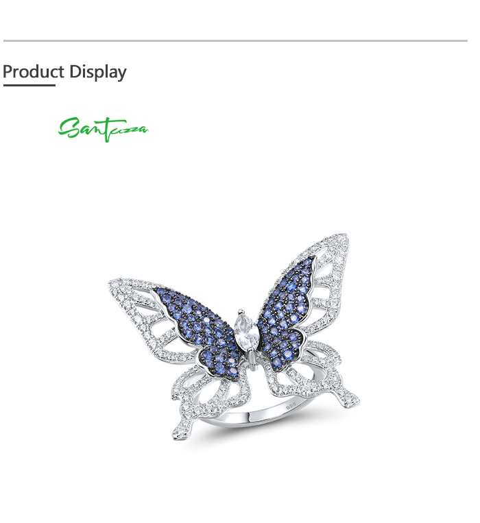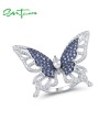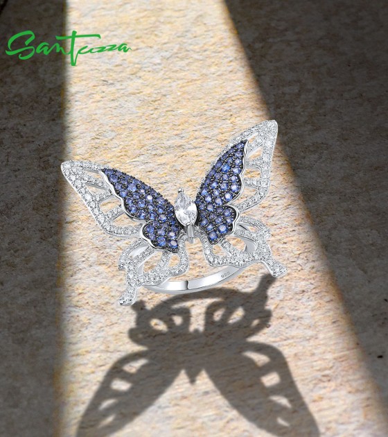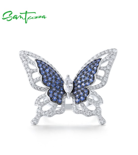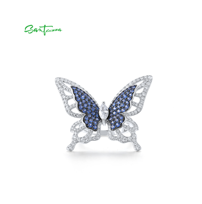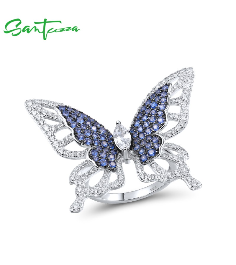 SANTUZZA 925 Sterling Silver Rings Blue Nano/White Cubic Zirconia Butterfly Ring Fine Jewelry