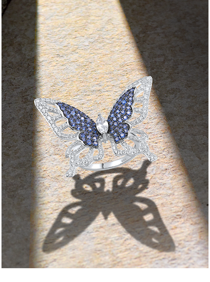 SANTUZZA 925 Sterling Silver Rings Blue Nano/White Cubic Zirconia Butterfly Ring Fine Jewelry - US 7