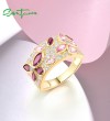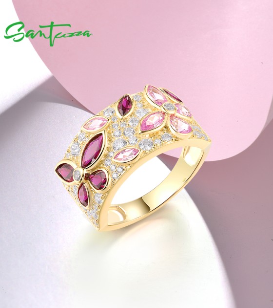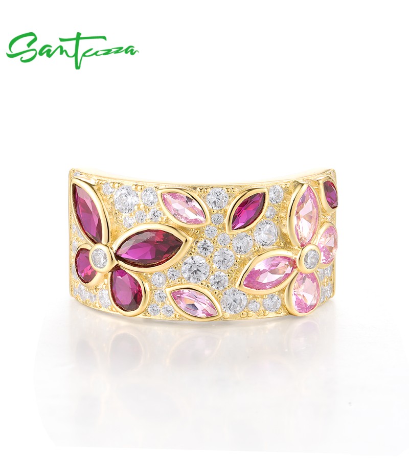 SANTUZZA 925 Sterling Silver Rings Cluster Created Ruby Pink Sapphire White CZ Jewelry