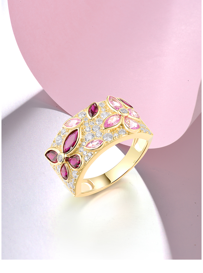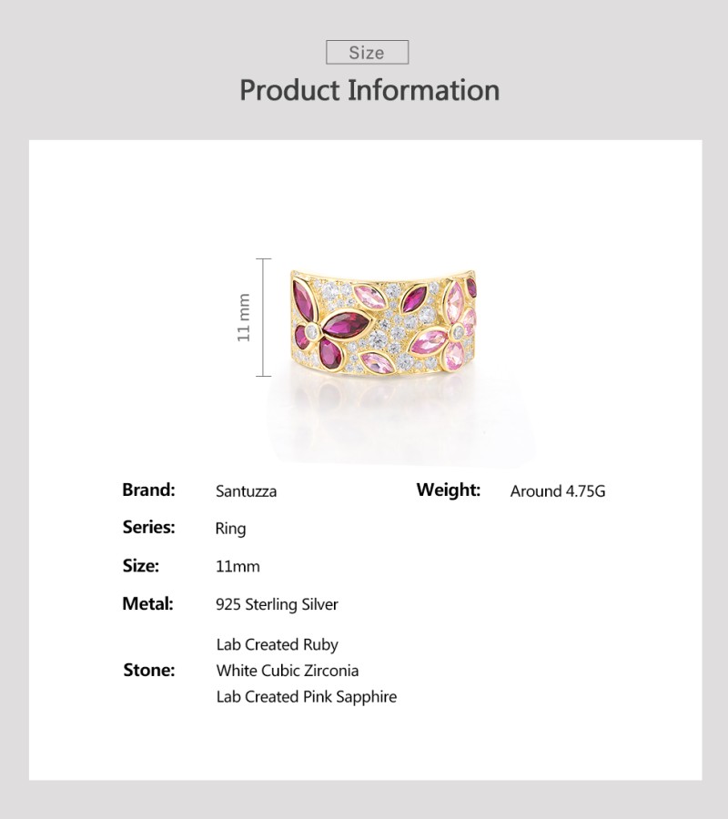 SANTUZZA 925 Sterling Silver Rings Cluster Created Ruby Pink Sapphire White CZ Jewelry - US 9