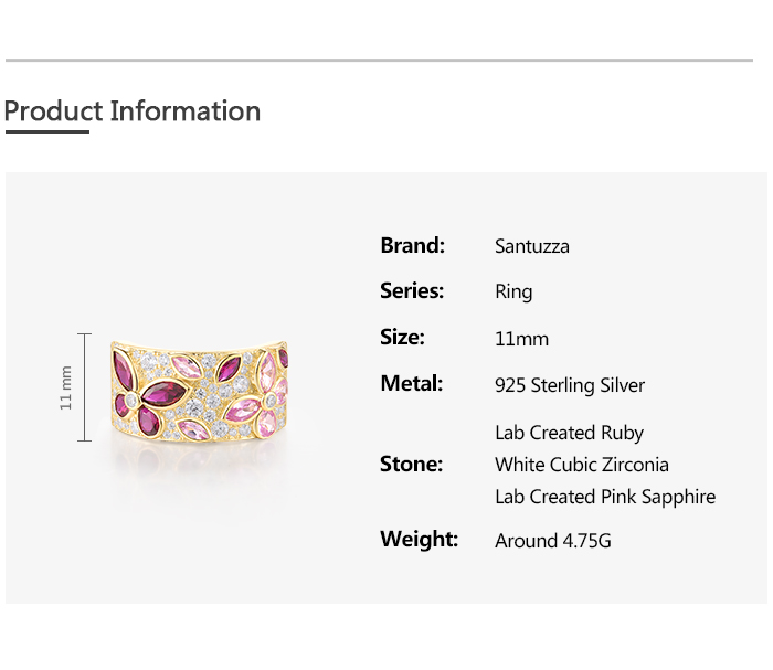 SANTUZZA 925 Sterling Silver Rings Cluster Created Ruby Pink Sapphire White CZ Jewelry - US 8