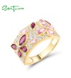 SANTUZZA 925 Sterling Silver Rings Cluster Created Ruby Pink Sapphire White CZ Jewelry