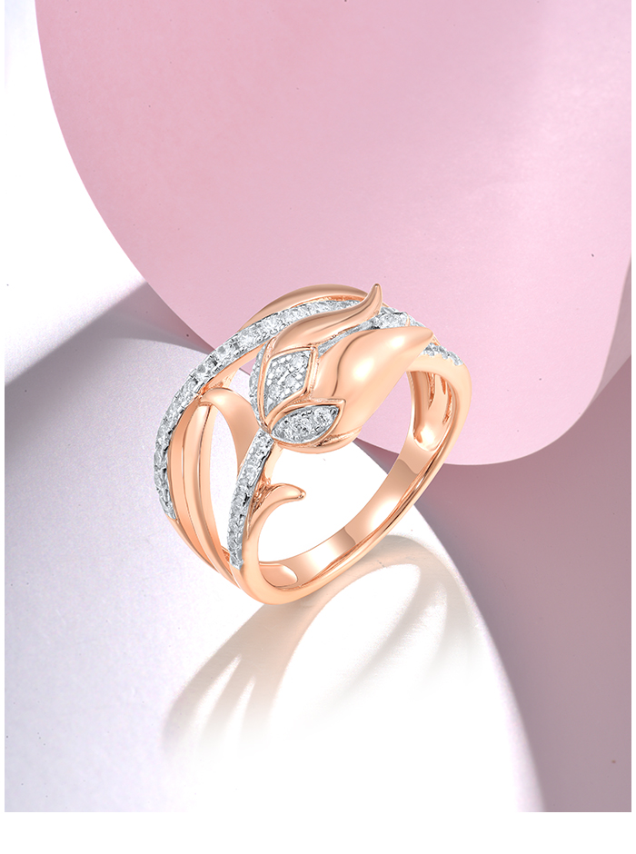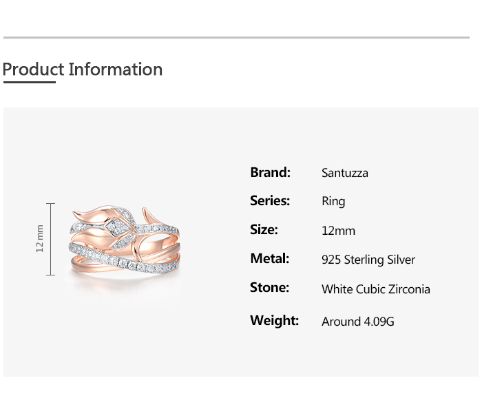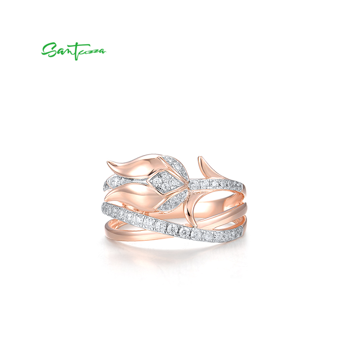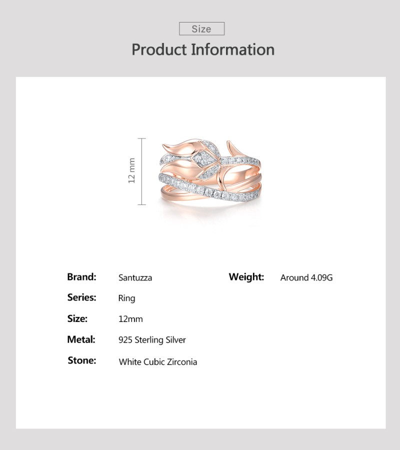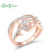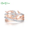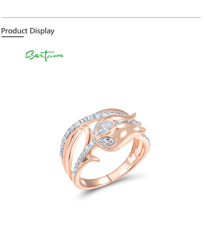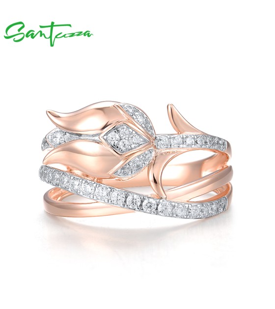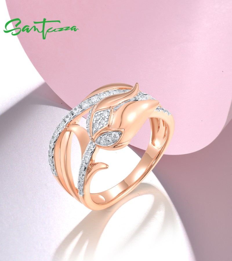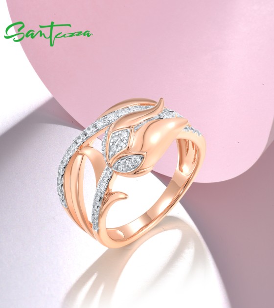 SANTUZZA 925 Sterling Silver Rings White CZ Pink Tulip Flower Fine Jewelry