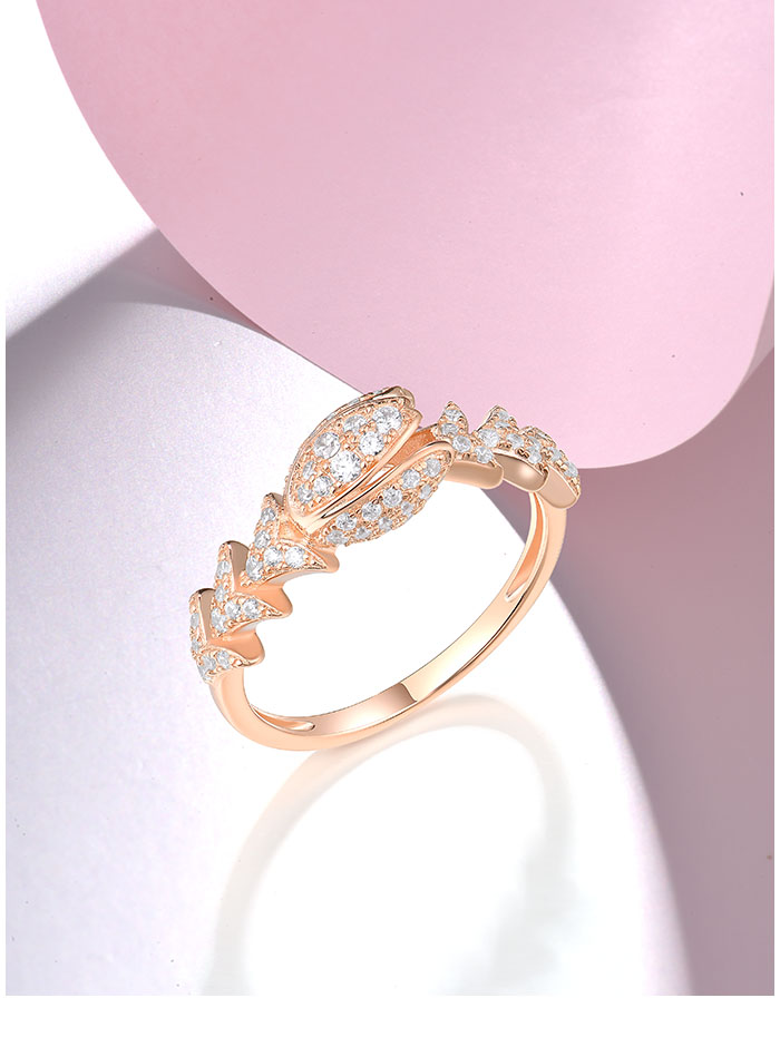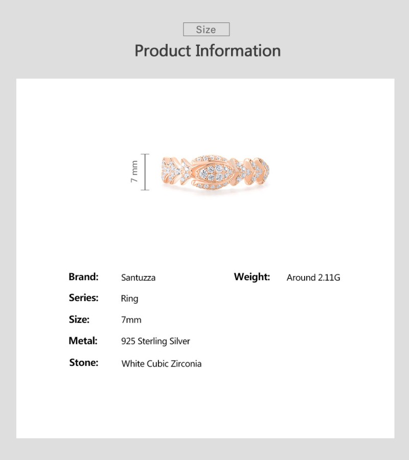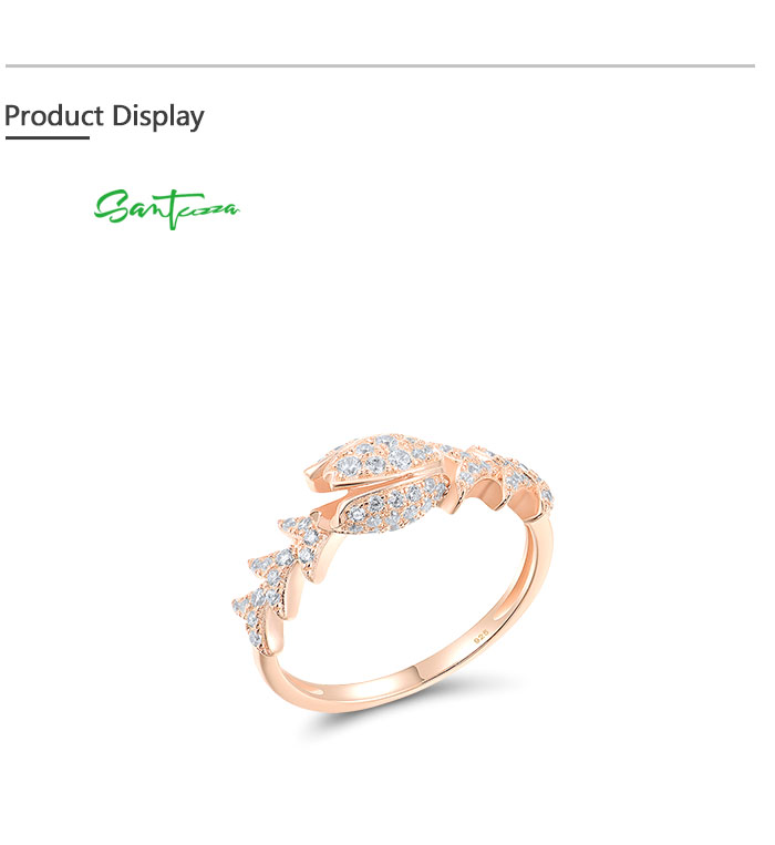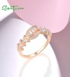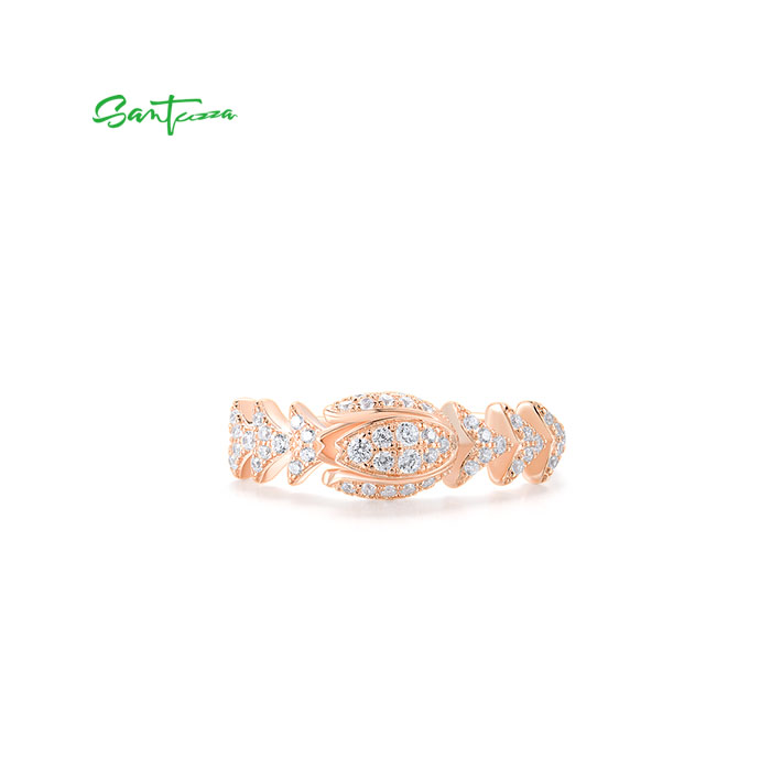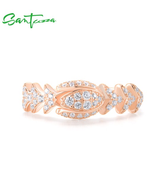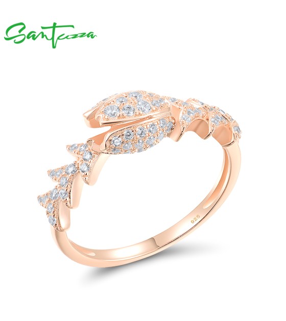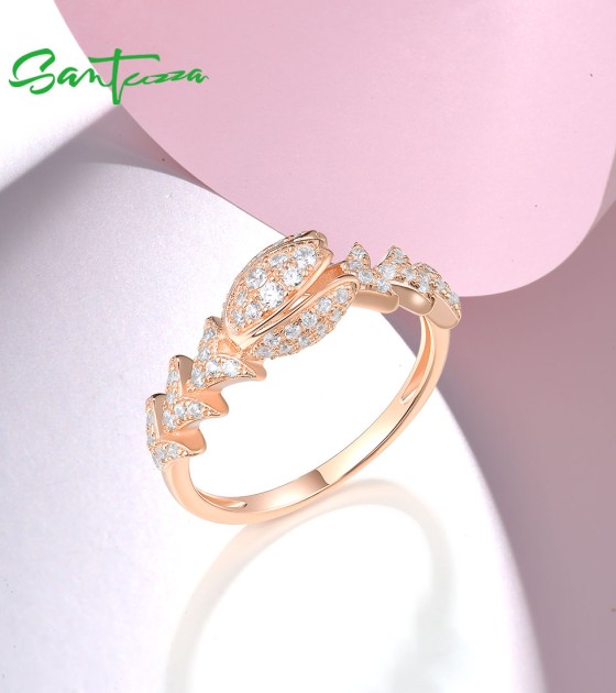 SANTUZZA 925 Sterling Silver Rings White CZ Rose Gold Plated Flower Fine Jewelry