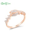 SANTUZZA 925 Sterling Silver Rings White CZ Rose Gold Plated Flower Fine Jewelry