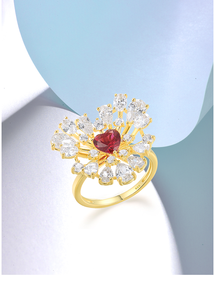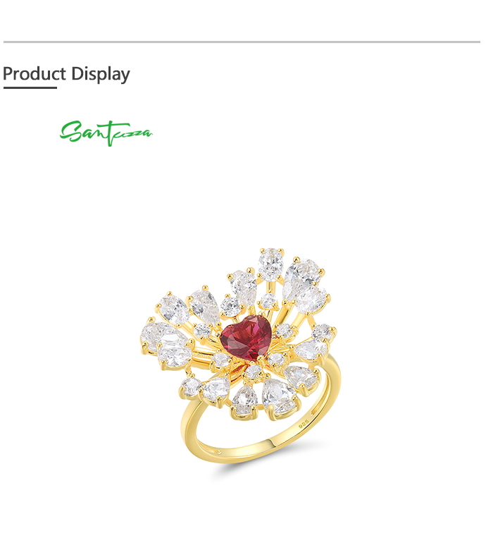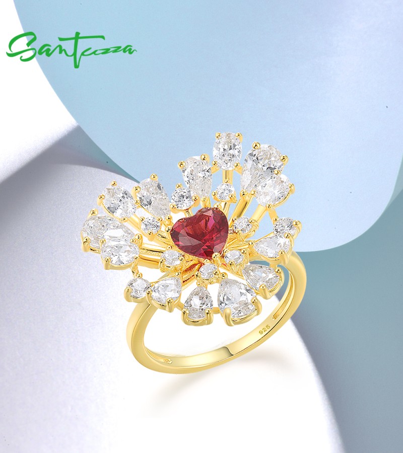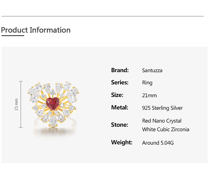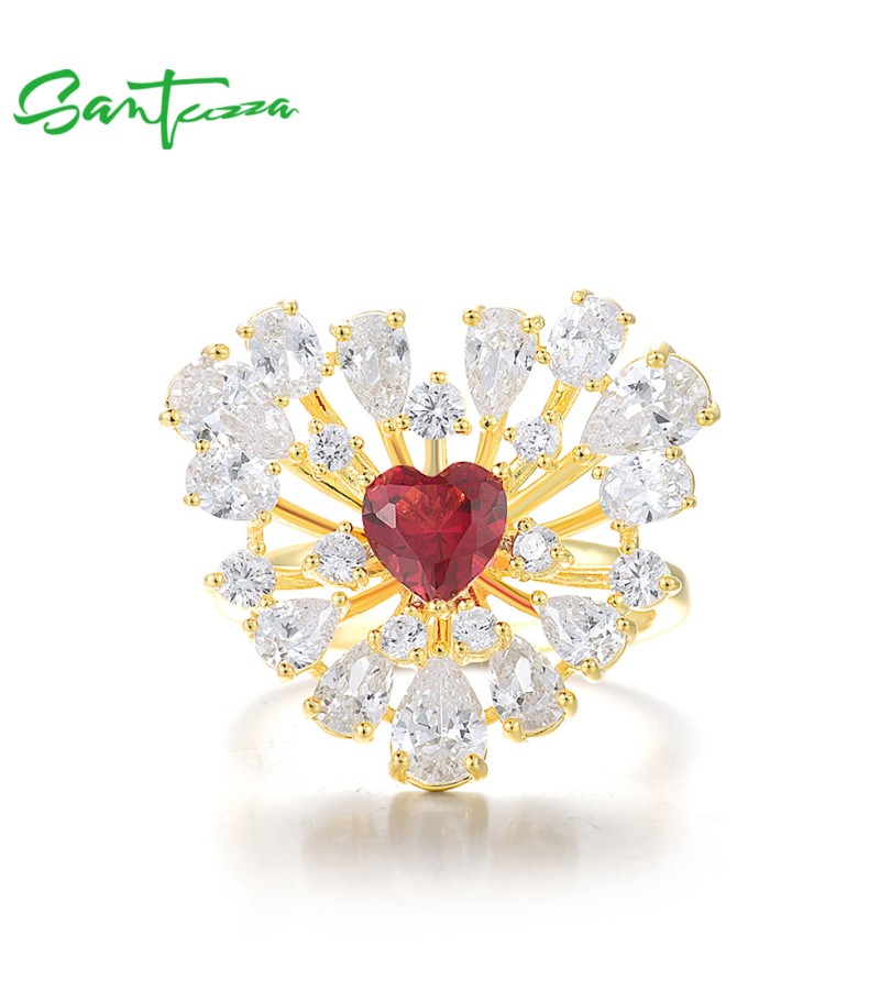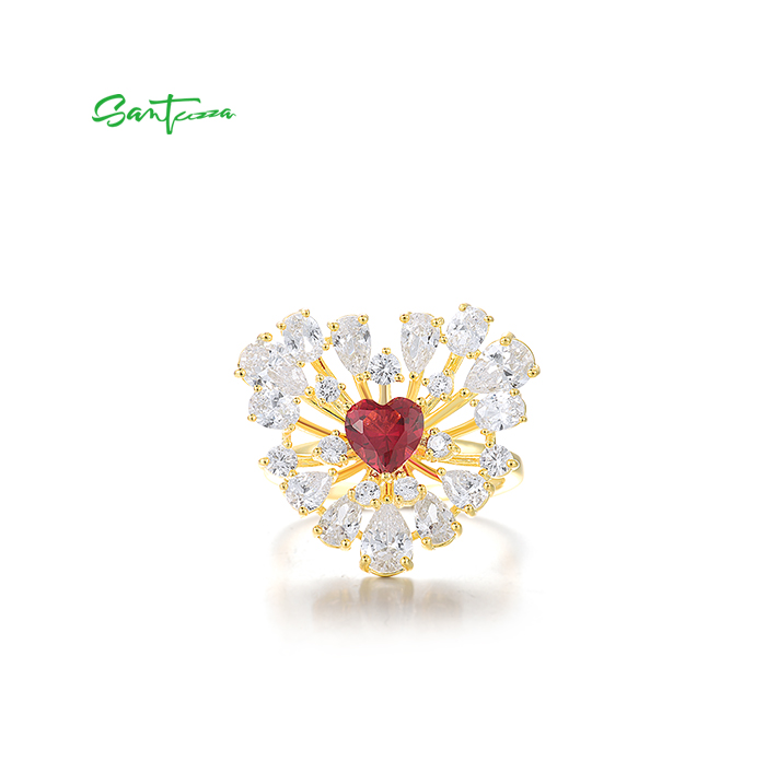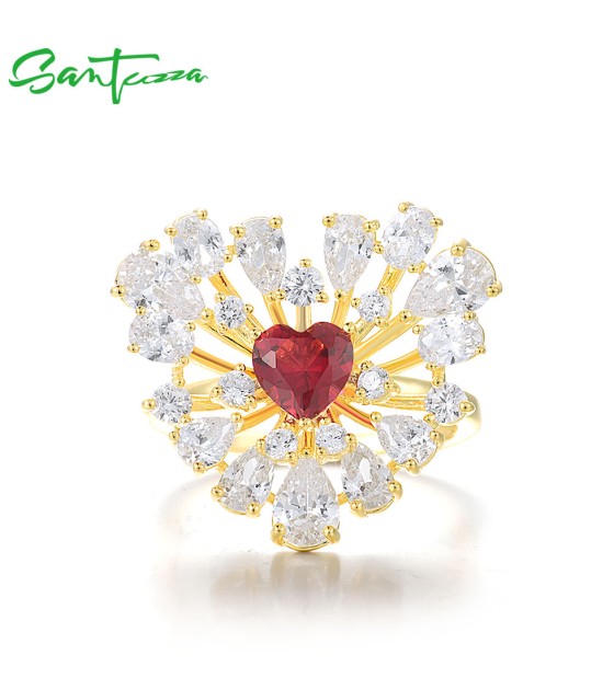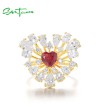 SANTUZZA 925 Sterling Silver Ring White CZ Red Heart Jewelry