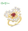 SANTUZZA 925 Sterling Silver Ring White CZ Red Heart Jewelry
